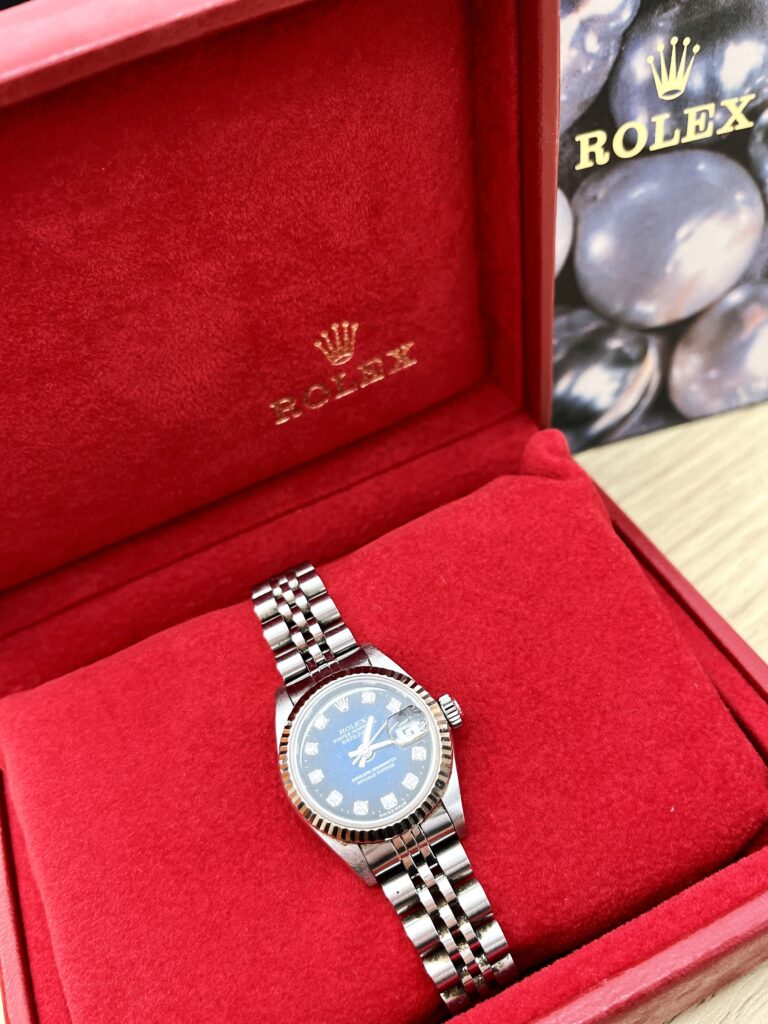 先日、高級時計ブランド、ロレックスのデイトジャストをお買取りいたしました。